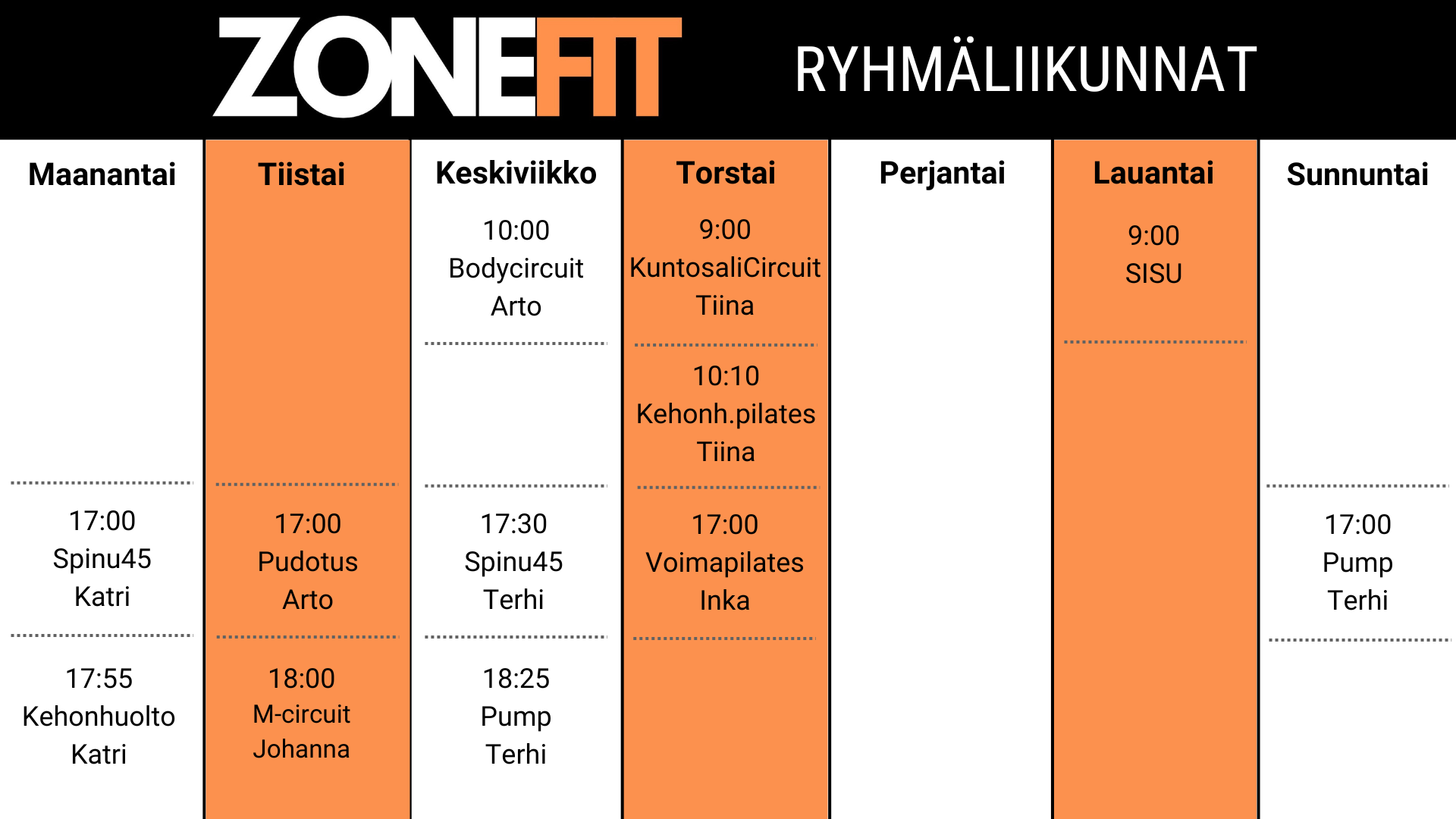 Ryhmäliikuntatunnit, kuten spinning, pump, kehonhuolto, pudotus ja paljon muuta!